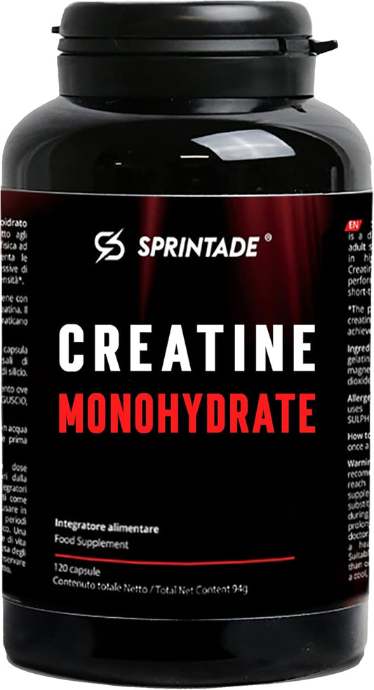 CREATINE MONOHYDRATE - 120 Capsules - 3G Daily Dose - Food Supplement for Sports, Fitness, Bodybuilding, Cycling, Training