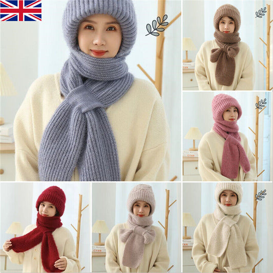Integrated Ear Protection Windproof Cap Scarf Knitting Thickening Hat Winter UK